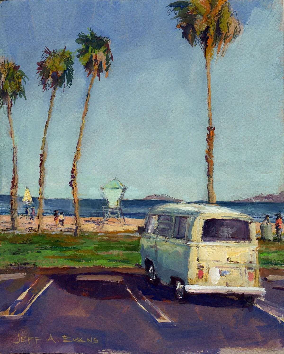 "VW with a VIEW"   - Santa Barbara, CA - 8 x 10 gouache on illustration paper